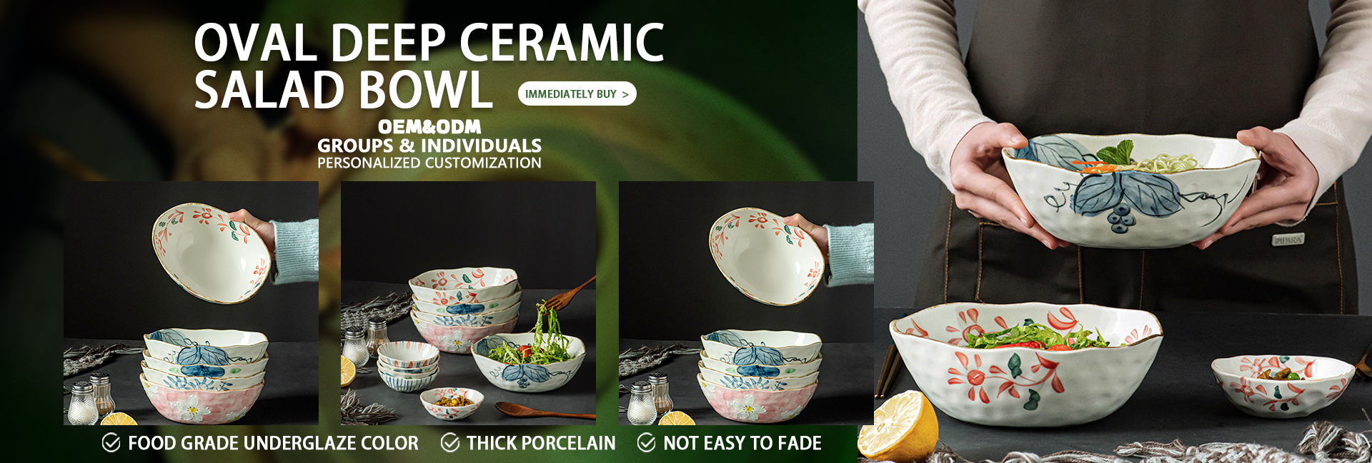 Bát trộn salad gốm sứ hình oval lớn cổ điển, kiểu dáng thanh lịch, làm thủ công, dành cho khách sạn, bộ đồ ăn vẽ tay cao cấp